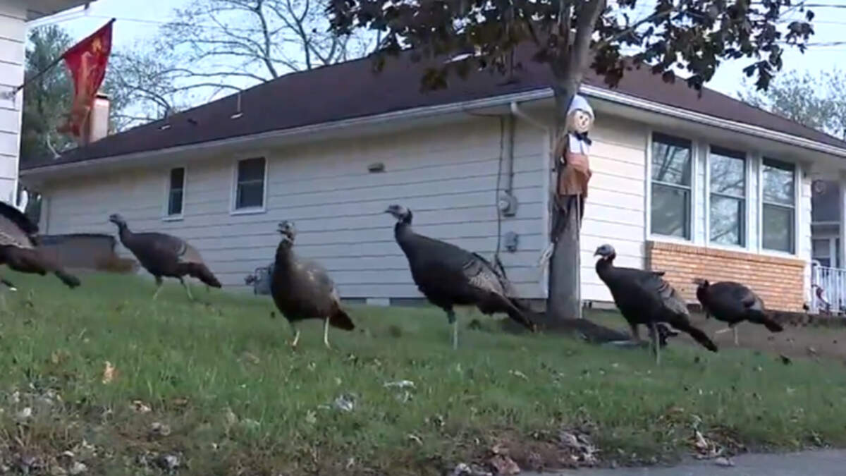 A flock of wild turkeys is terrorizing a New Jersey community for people over the age of 55. Dozens of turkeys have descended on Holiday City in Toms River and have left residents living in fear as the aggressive turkeys destroy their property and attack them if they get too close.